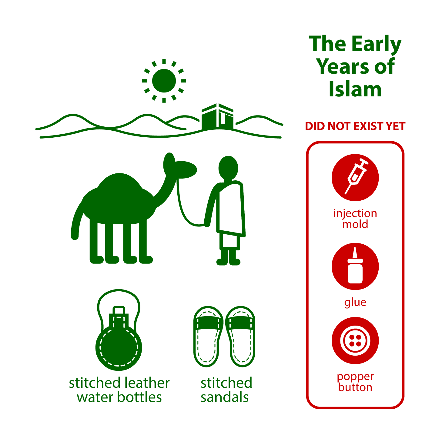 During the Prophet’s (saws) time people would have been carrying leather water bottles, which would have been stitched, and they would have had sandals that would have been stitched as they didn’t have glue or injection mould.